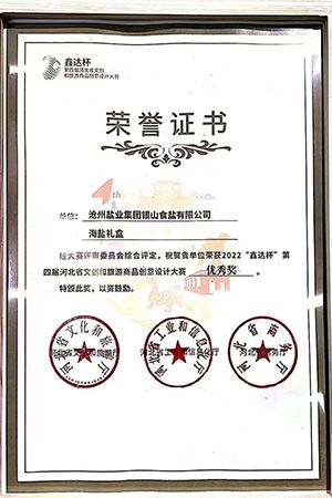 日前,第四屆河北省文創(chuàng)和旅游商品創(chuàng)意設(shè)計大賽評選結(jié)果揭曉,滄鹽牌“海鹽禮盒”獲得省級“優(yōu)秀獎”和市級“創(chuàng)新創(chuàng)意獎”。
