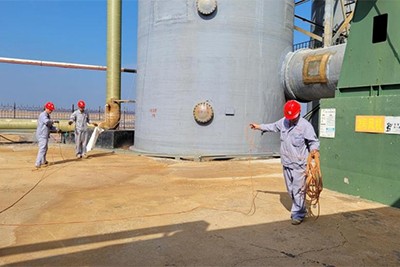 走進(jìn)廠區(qū),機(jī)器的轟鳴聲交織成一曲獨(dú)特的生產(chǎn)交響樂(lè)。在溴素生產(chǎn)氣化區(qū)、富集區(qū)、提取車(chē)間,生產(chǎn)帶班長(zhǎng)正認(rèn)真地盯著各項(xiàng)數(shù)據(jù)指標(biāo)的變化,仔細(xì)進(jìn)行記錄和分析,每一個(gè)細(xì)微的參數(shù)變動(dòng)都逃不過(guò)他的眼睛。班組長(zhǎng)陳金浩說(shuō):“吹溴工藝的化工生產(chǎn)過(guò)程需要時(shí)刻保持精神專注,不能有絲毫的懈怠馬虎,不然會(huì)大大影響溴的生產(chǎn)質(zhì)量和產(chǎn)量。雖然很希望與家人一起團(tuán)聚,但在這個(gè)崗位上就要履行好自己的工作職責(zé)!必(fù)責(zé)設(shè)備維護(hù)的老黨員李兆峰師傅也沒(méi)有休息,他帶領(lǐng)著維修團(tuán)隊(duì)不停穿梭在各個(gè)設(shè)備之間,仔細(xì)地巡檢、認(rèn)真查看各種泵類、閥門(mén)、流量計(jì)等設(shè)備運(yùn)轉(zhuǎn)情況。他們拿著工具,有條不紊地?cái)Q緊每一顆螺絲、擦拭每一個(gè)零件。兆峰師傅表示:“設(shè)備的正常運(yùn)行是整個(gè)溴素生產(chǎn)的關(guān)鍵,更是安全生產(chǎn)的屏障,我們多付出一點(diǎn),生產(chǎn)就多一份保障,不能因?yàn)槭枪?jié)日就放松對(duì)設(shè)備的檢查維護(hù)。”