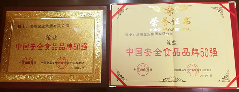 7月28日,在《中國食品報》和中國食品安全產(chǎn)品產(chǎn)業(yè)發(fā)展論壇組委會共同舉辦的“2018中國食品安全產(chǎn)業(yè)發(fā)展論壇暨放心食品品牌推廣活動”全國評選大會上,滄州鹽業(yè)集團(tuán)有限公司和滄鹽集團(tuán)銀山食鹽有限公司生產(chǎn)的“滄鹽”牌食用鹽分別獲得“2018中國安全食品品牌50強(qiáng)”、“2018中國安全食品(行業(yè))十大消費(fèi)者滿意品牌”殊榮。這是“滄鹽”牌食鹽又一次獲得全國性大獎。